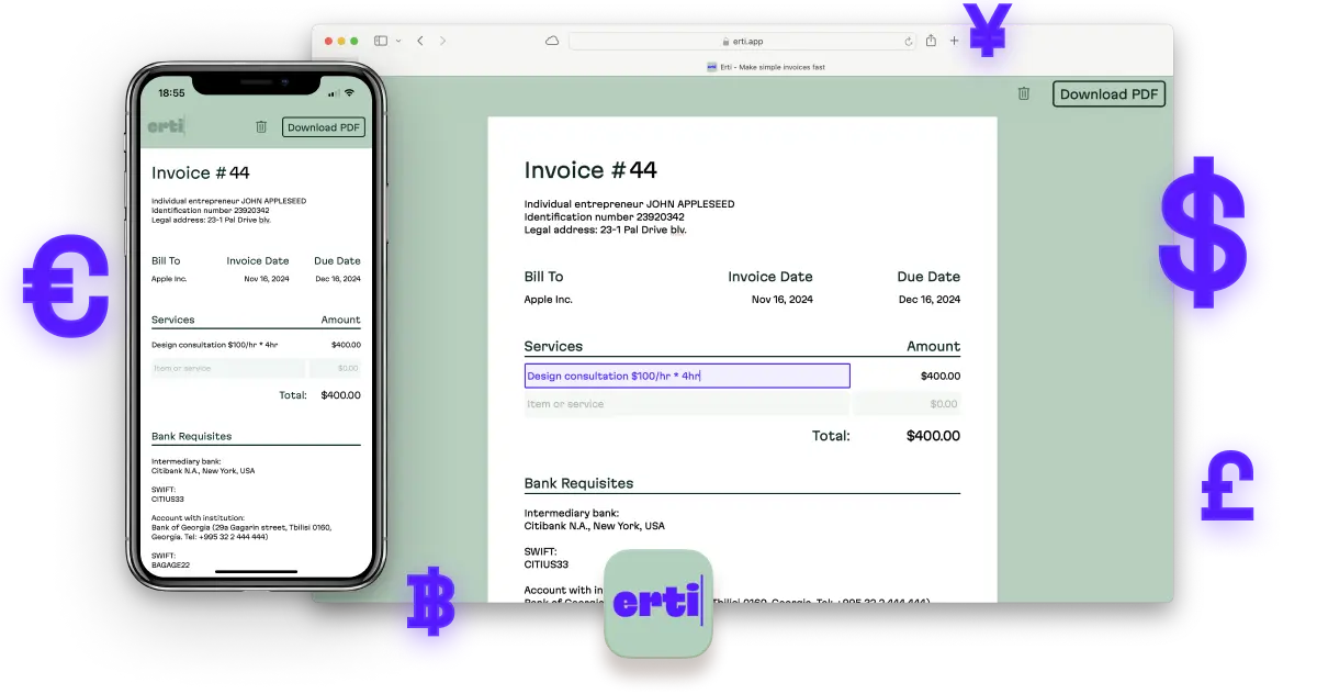 Erti is a simple invoice builder that doesn't have the usual complexity of other competitors.