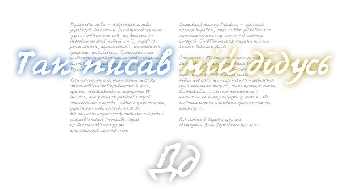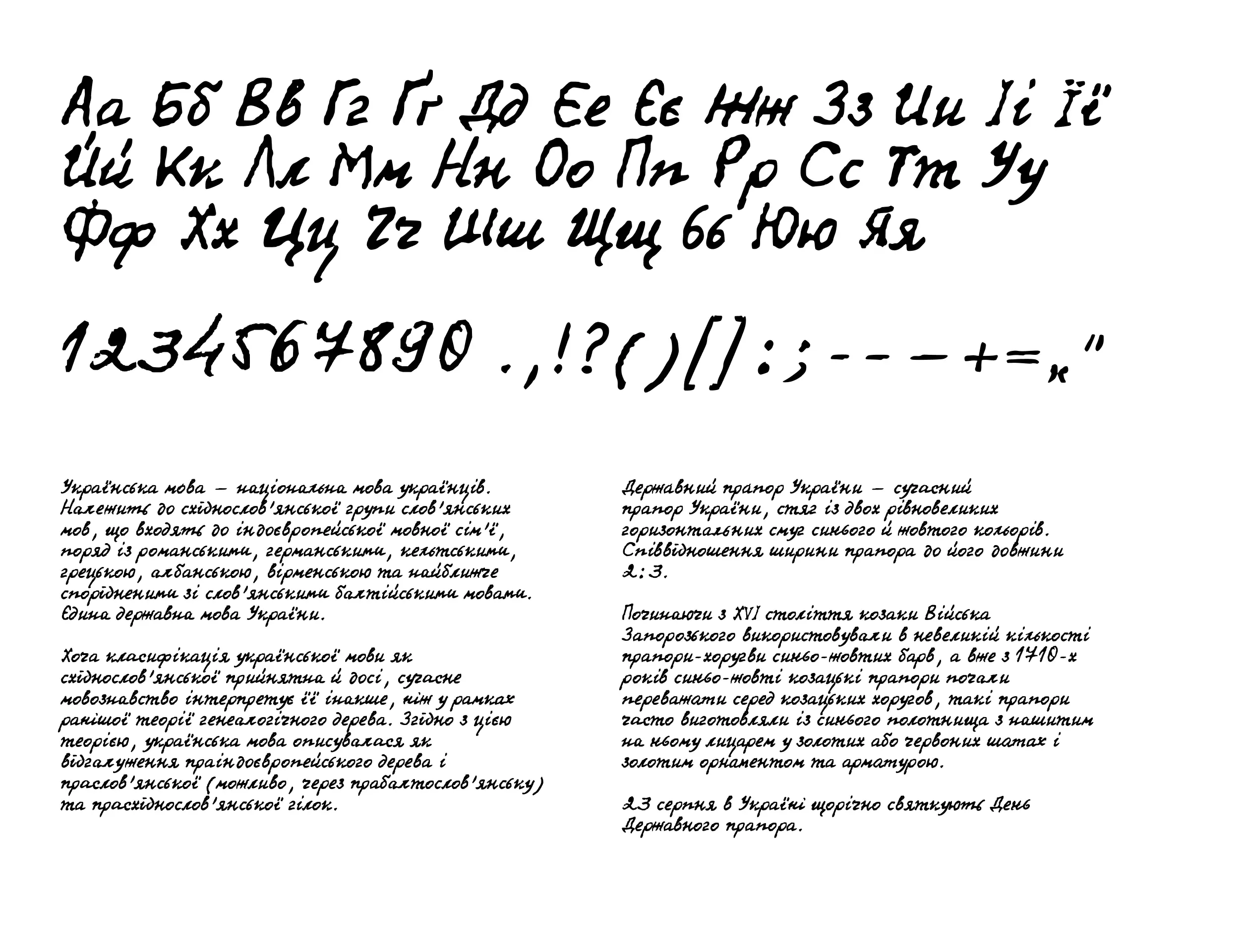 This exclusively Ukrainian font has been made as a tribute to my late grandfather, Hryhorii Oleksiiovych Lysyi. Although the font captures his unique writing style, it will work well as a general handwritten font.
