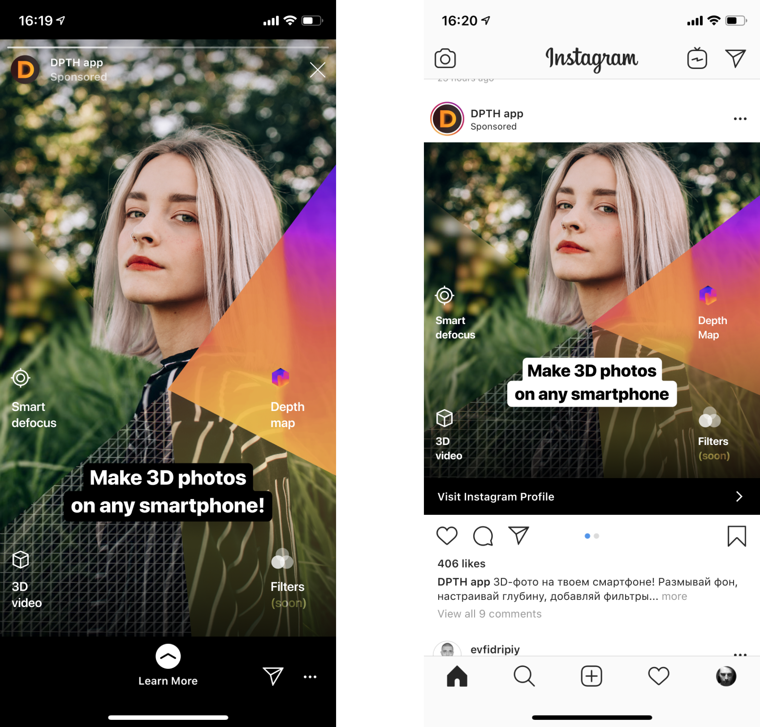The design allowed to create different variations of the ad in different languages to experiment with conversion:
