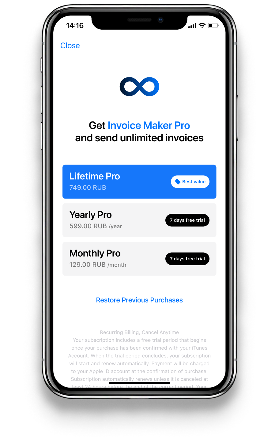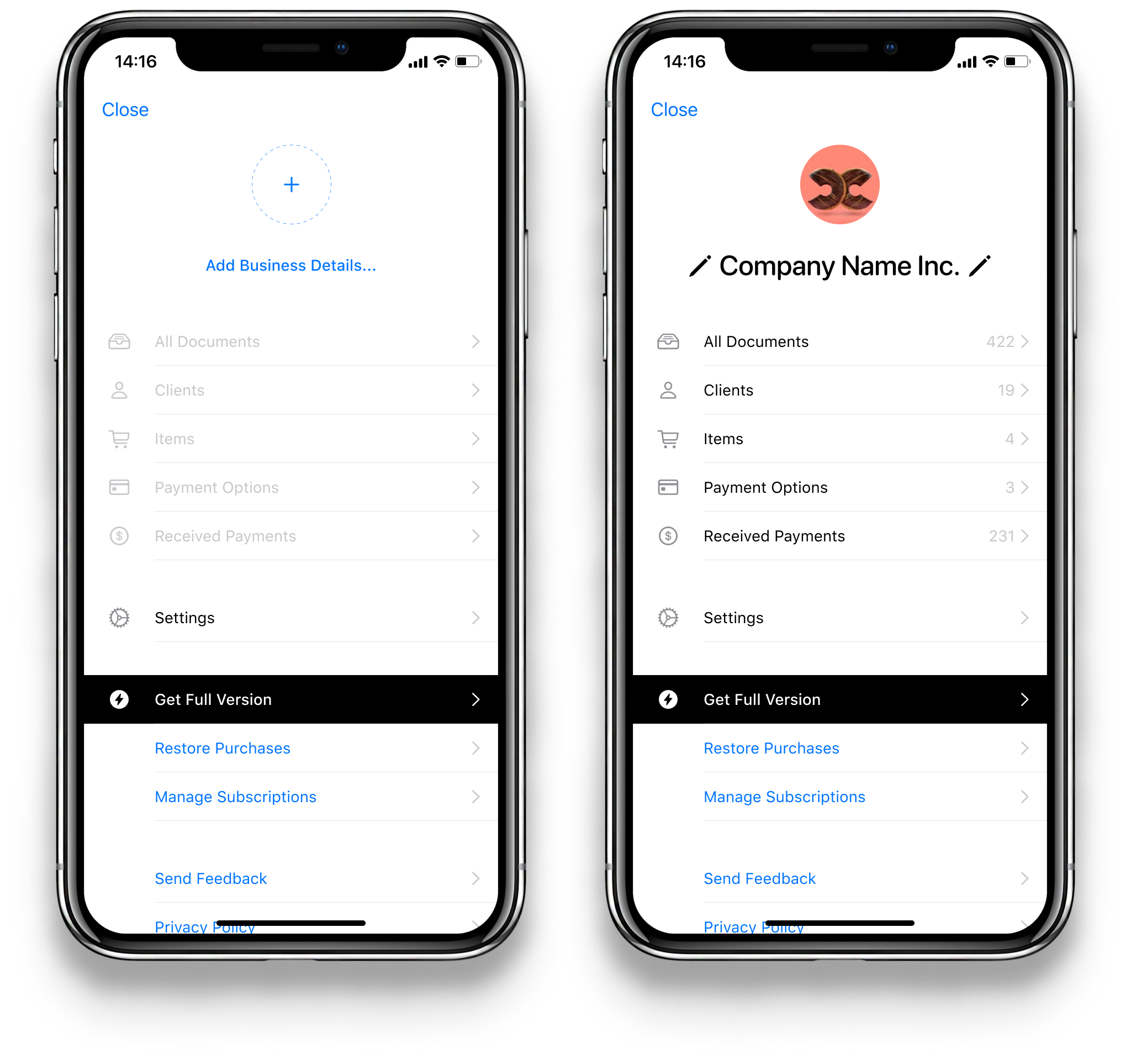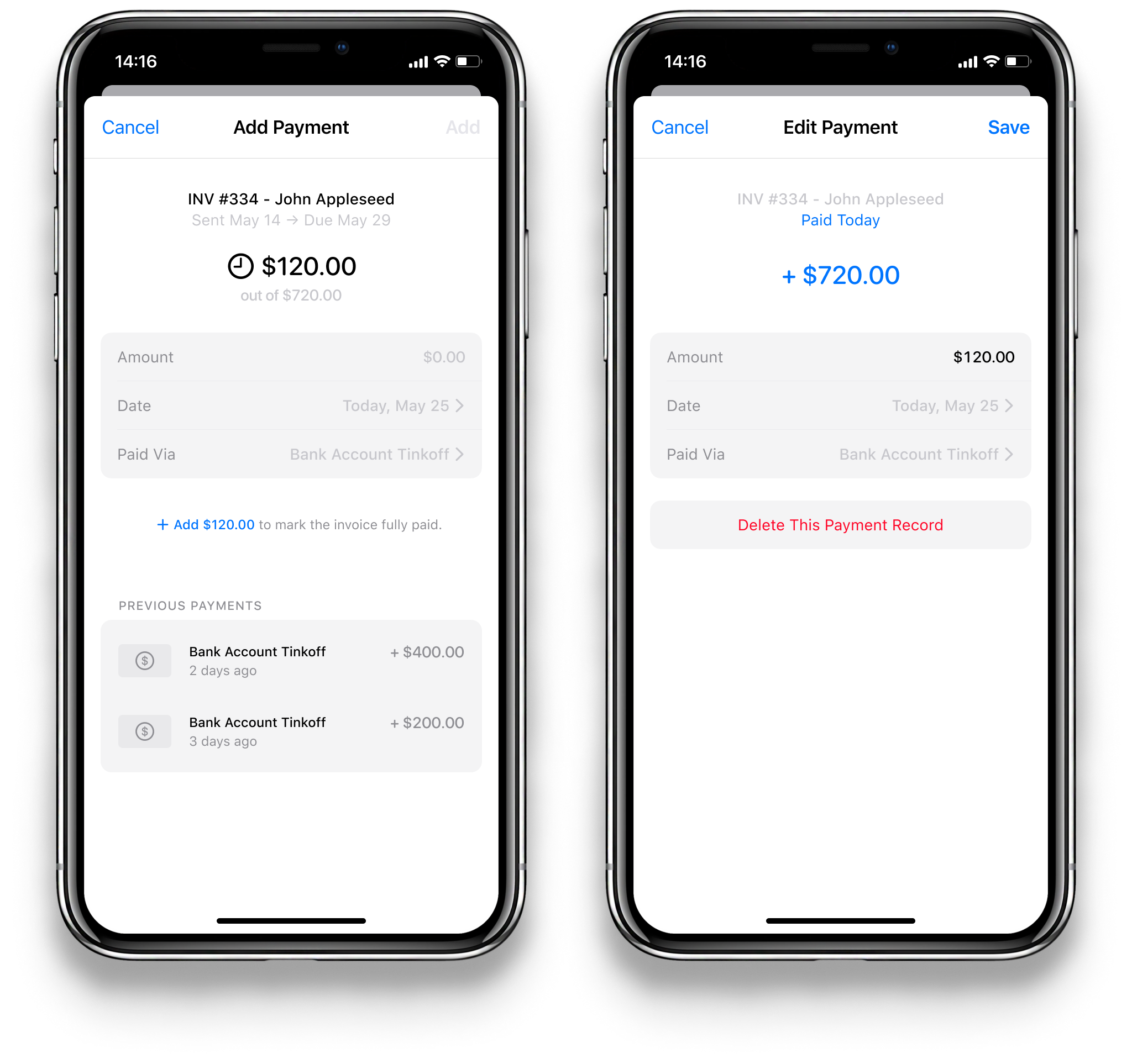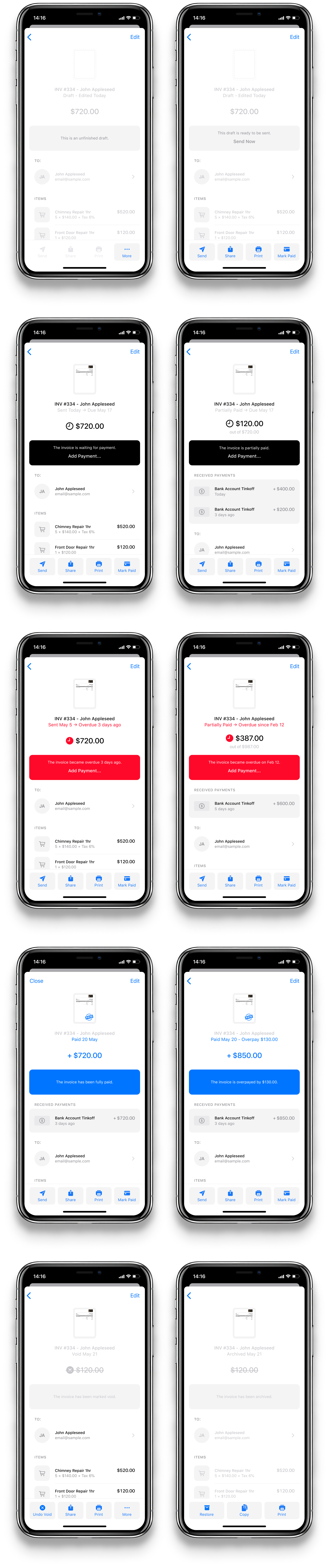 The white sheet works as a preview and allows to craft a perfect invoice with no fuss. As simple as it looks, the app has many minor nuances that make working with it smooth and pleasant.