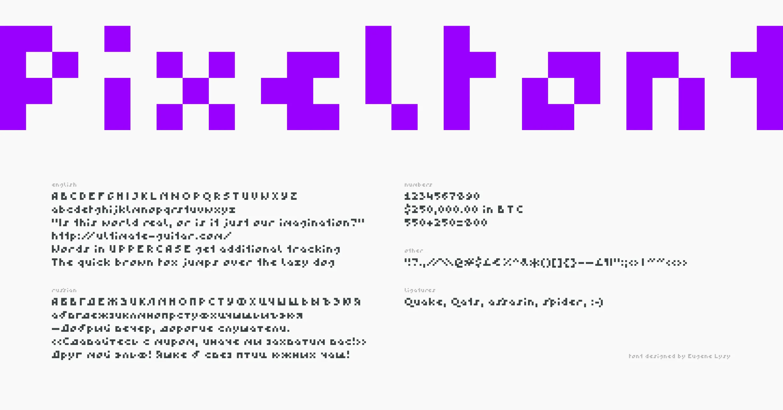 I made this extra small pixel font as a design challenge. If you use Pixelfont in your project, please drop me a link to make my day.